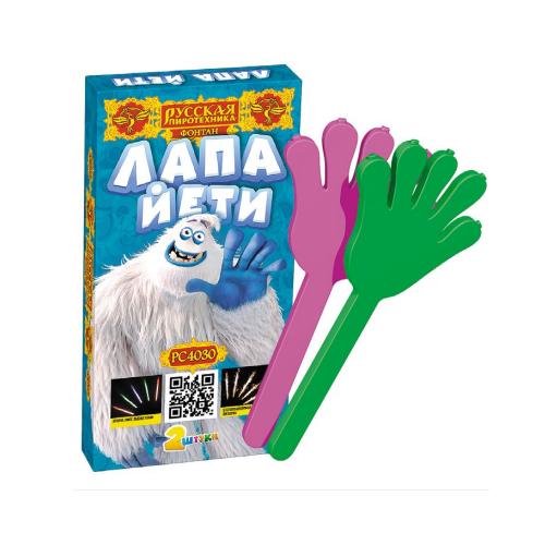 Фонтан Лапа йети Электроугли РС4030 купить 3 250 руб. высота форса 1.5 м. время работы 60 сек. Русская пиротехника известный магазин рассчитать доставку в Электроуглях | ehlektrougli.torgsalut.ru